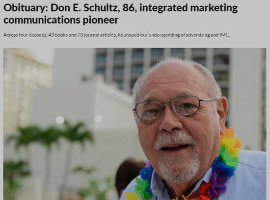 中國廣告界的良師益友、整合營銷傳播理論的創(chuàng)始人、美國西北大學唐· E · 舒爾茨教授于美國時間2020年6月4日去世,享年86歲。
