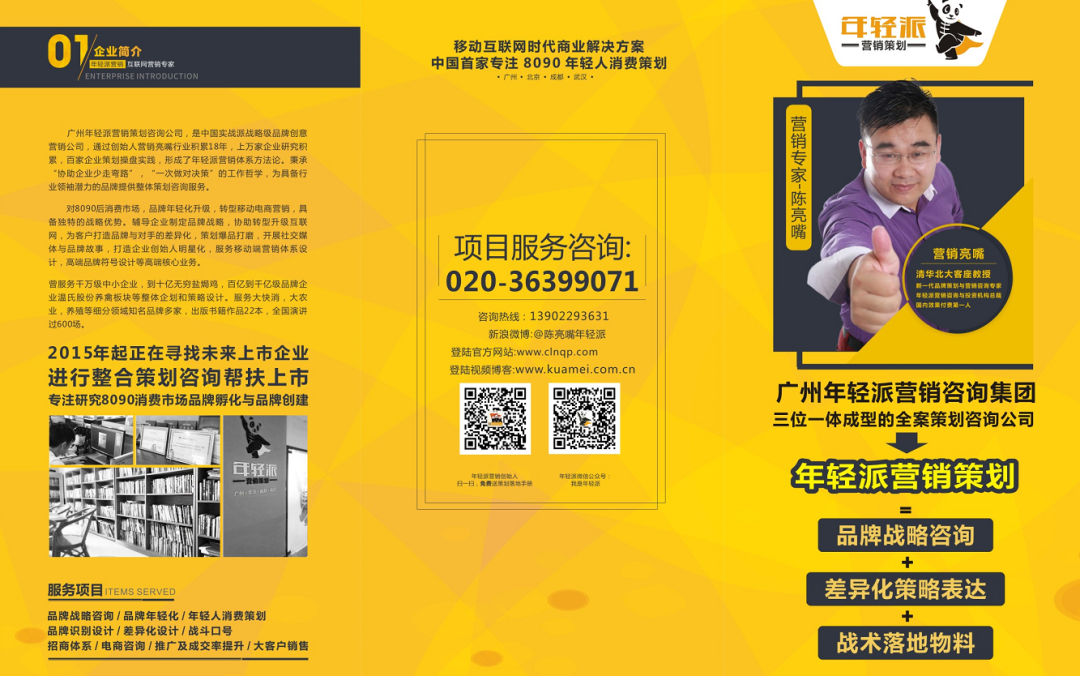 年輕派戰(zhàn)略營(yíng)銷 是中國(guó)企業(yè)咨詢服務(wù)戰(zhàn)略轉(zhuǎn)型模式中“效果付費(fèi)”的開創(chuàng)者和踐行者,為企業(yè)提供實(shí)戰(zhàn)、有效果的戰(zhàn)略轉(zhuǎn)型服務(wù),并落地到企業(yè)的整體品牌營(yíng)銷運(yùn)營(yíng)體系中。